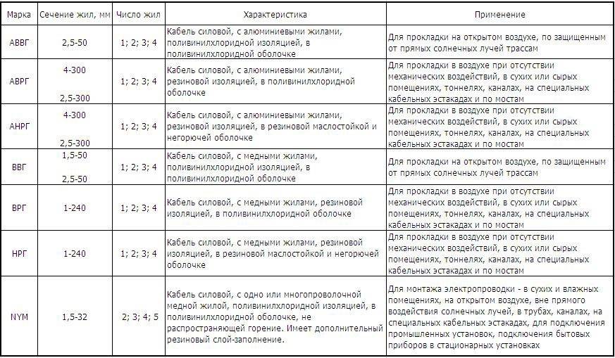С помощью силовых электрокабелей выполняется прокладка наружной и внутренней проводки, они бывают таких видов: