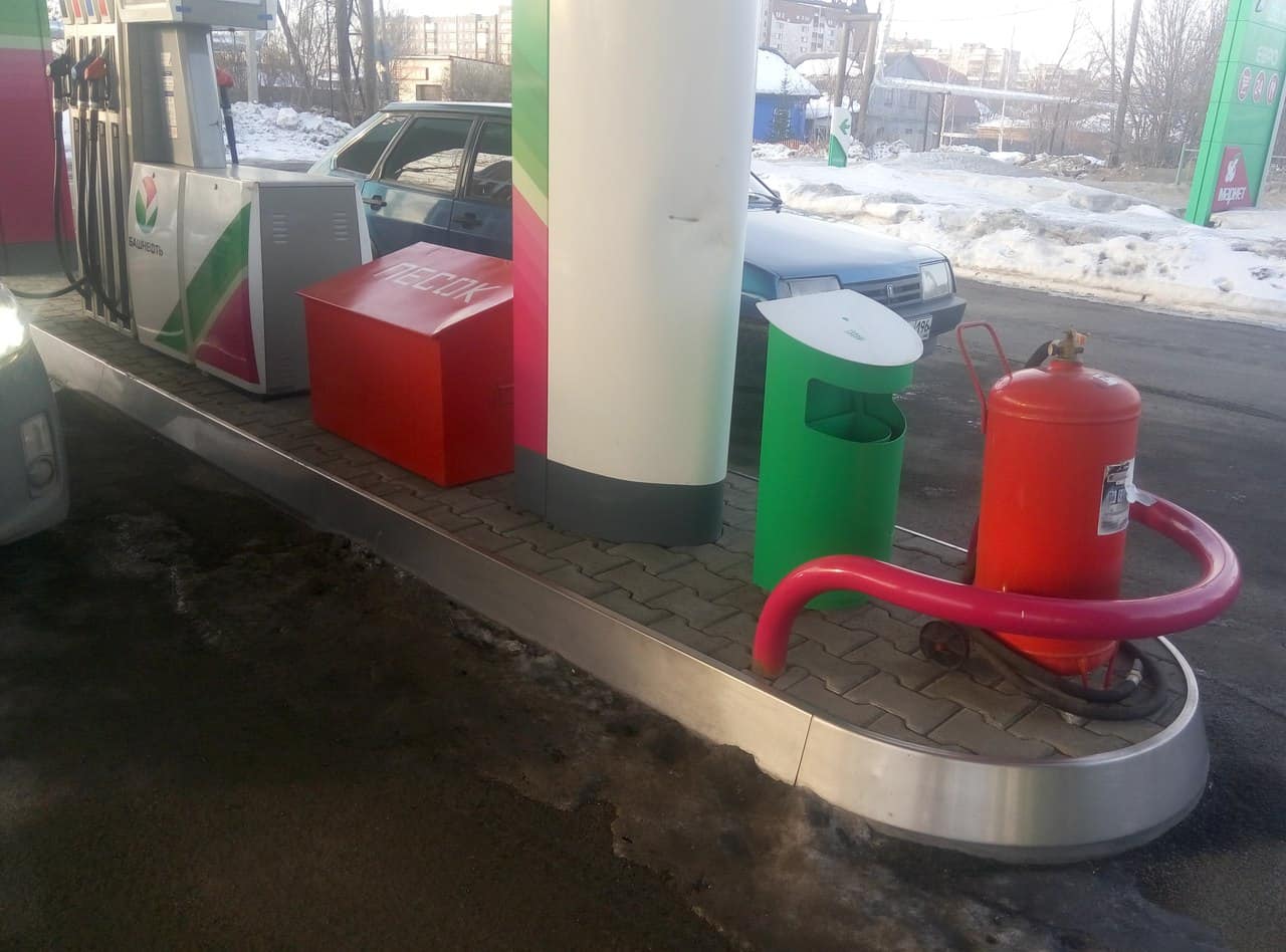 Согласно Федеральному закону РФ от 21 декабря 1994 года № 69-ФЗ «О пожарной безопасности» заправочные станции в обязательном порядке должны иметь на территории противопожарный щит и ящик с песком в несгораемом корпусе.