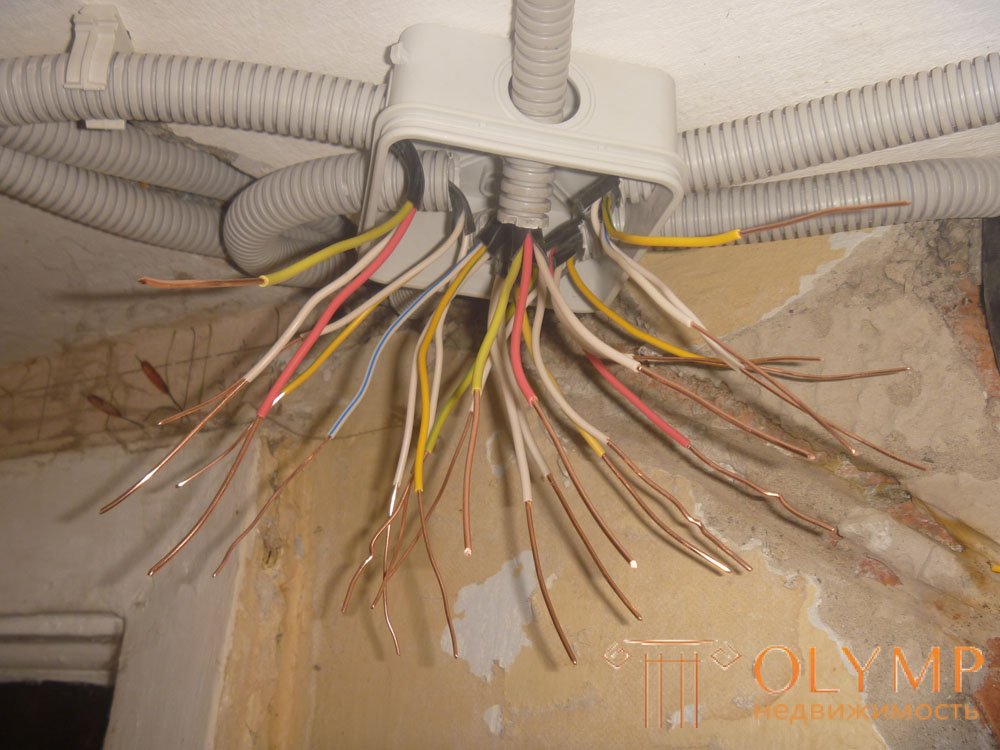 люстрой, а также идет отвод на другую распределительную коробку. В
