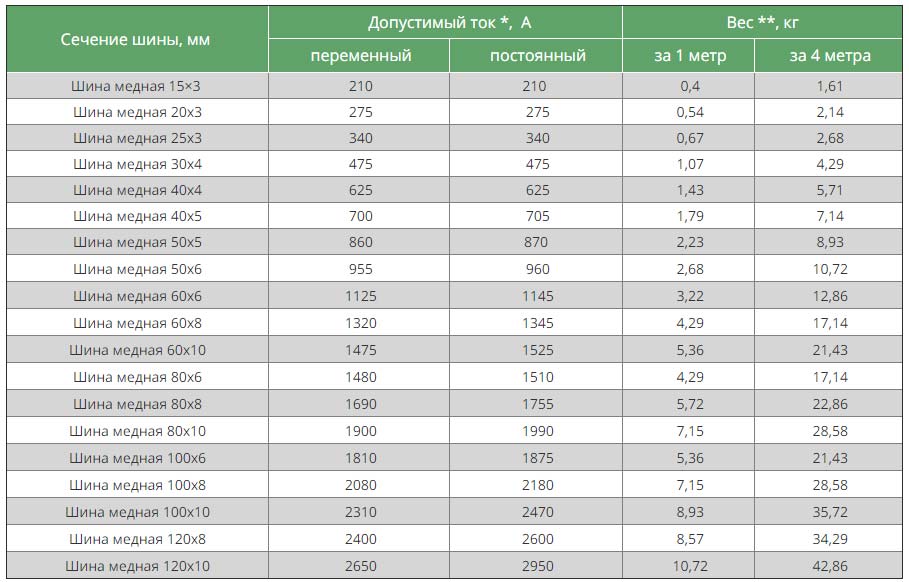 Медные шины с содержанием меди до 99% ни в чем не уступают алюминиевым, но имеют меньшее распространение из-за сравнительно высокой стоимости.