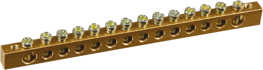 По сути, это усиленный проводник открытого типа (в контактной зоне), на который можно с помощью винтовых или иных соединителей завести нулевые проводники. Типичная конструкция — прямоугольный брусок из прочного металла с хорошей проводимостью: чаще всего латунь, или иные сплавы на основе меди.
