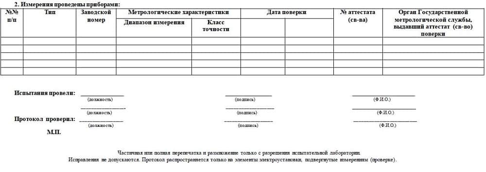 Протокол может составляться в отношении части системы, а также содержать результаты полного цикла обследований без разбиения на отдельные составляющие. В протоколах измерения, которые оформляют по ГОСТ Р 50571.16-99 (гармонизирован с МЭК 60364-6-61-86):