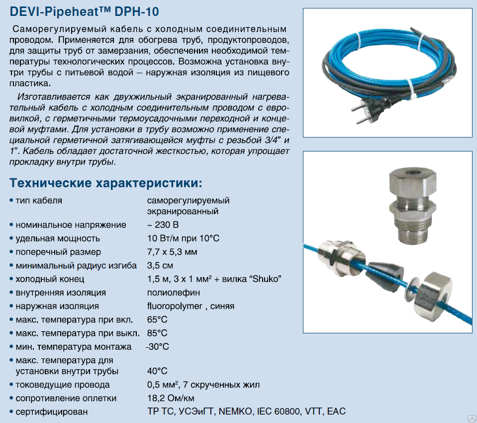 Препятствует промерзанию водопроводных труб и ключевых узлов в зимний период. Как только, поверх кабеля устанавливается теплоизоляция — он готов к использованию.