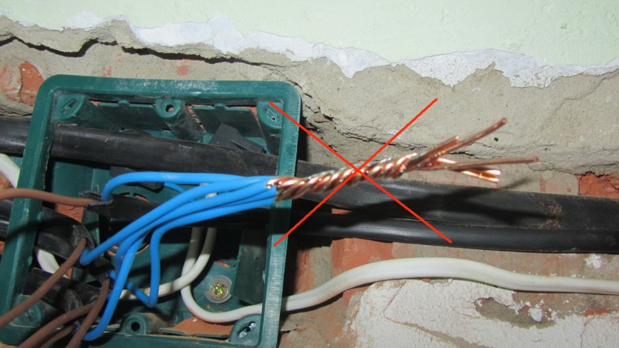 - дедовский способ скрутки с последующей изоляцией изолентой в деревянном доме лучше не использовать.