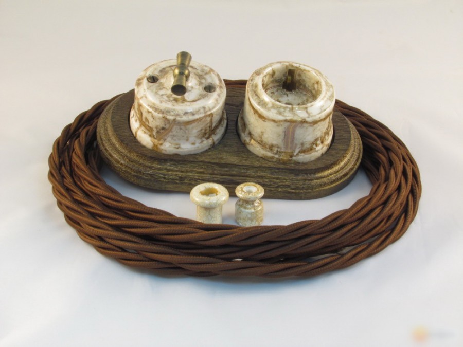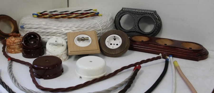 Достойный вид открытой проводки и настоящий ретро стиль невозможен без ретро фурнитуры. Европа, Россия и Китай выпускают достаточно большой ассортимент комплектующих и фурнитуры.