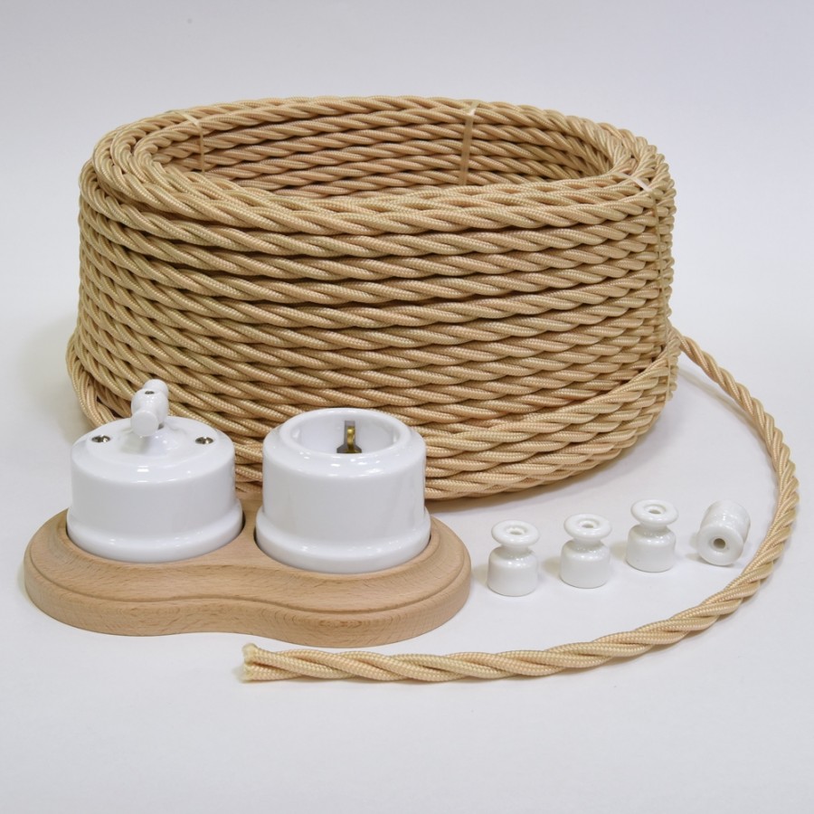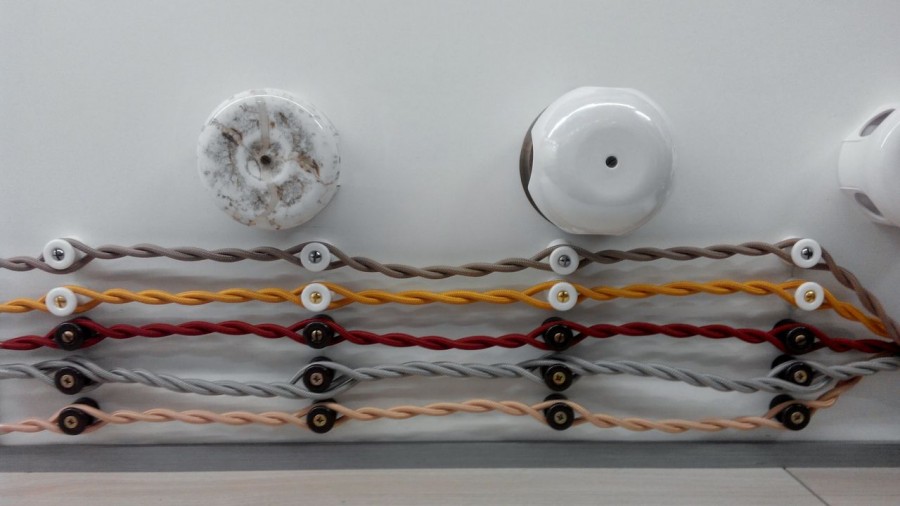 Настало время определиться с дизайном ретро электрики и цветом проводов и закупить оборудование, естественно с небольшим запасом, в первую очередь это касается декоративного провода и изоляторов. Не забывайте, что для монтажа вам также потребуются: саморезы для монтажа изоляторов (обычно их выбирают одного цвета с керамикой) и пластиковые стяжки (хомуты) для фиксации провода.