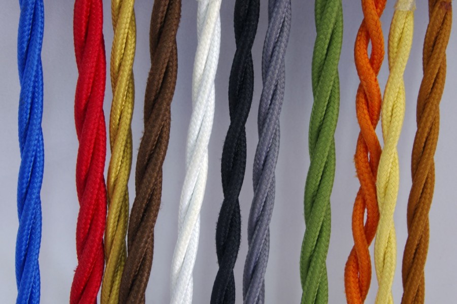 Что такое текстильный кабель (он же ретро кабель)? Это двужильный, либо трехжильный медный электрический провод, упакованный в изоляцию ПВХ, затем покрытый цветной текстильной оплеткой либо обвязкой из стекловолокна. Двужильные провода обычно берут для освещения. Трехжильные — для проводки (так как третья жила предназначена для заземления).