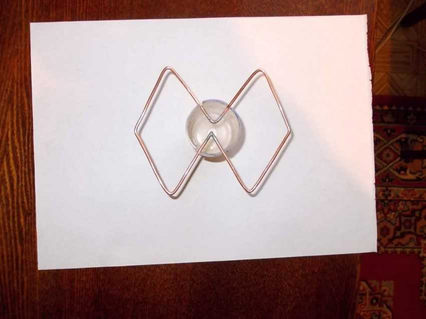 Понадобится медная проволока, лист алюминия толщиной 2мм. Сначала надо изогнуть проволоку таким образом, чтобы в середине ее стороны не касались. И припаять концы.