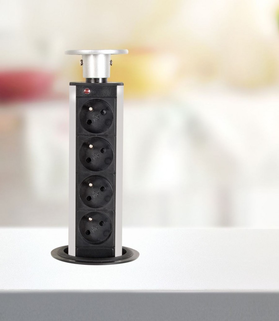 - установка осуществляется предельно просто. Монтаж блока занимает около часа и почти не сопровождается образованием пыли и грязи. При этом пользователь получает сразу несколько дополнительных розеточных гнезд. Установка такого же числа стационарных розеток потребует намного больших трудозатрат — придется бить штробы. После этого ремонт на кухне нужно будет переделывать;