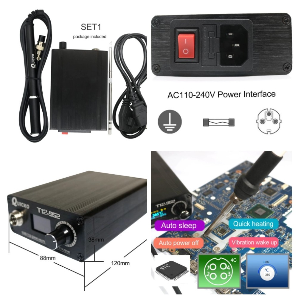 Внутри ручки есть электронная система управления температурой жала, на поверхность выведен ЖК-дисплей с кнопками для регулировки температуры. В паяльнике используется долговечный керамический нагреватель, который обеспечивает нагрев до 350 градусов за 15 секунд.