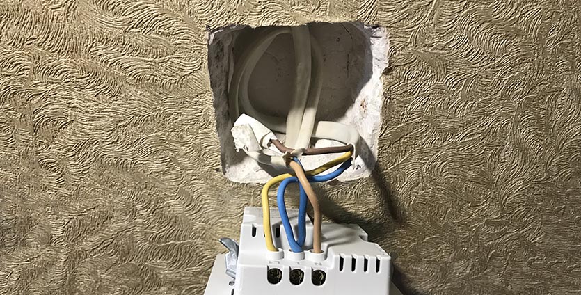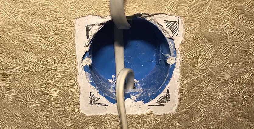 Остается только расширить существующую дыру в стене от круглого подрозетника, чтобы в нее помещался квадратный выключатель.