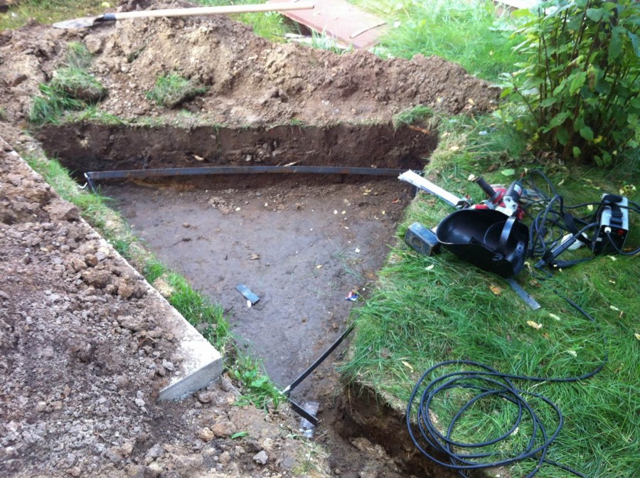 - Затем по уже нанесённой разметке выкапываются канавки глубиной 70-80 см и шириной порядка 50 см (глубина выбирается из соображения минимальной коррозии металлосвязей);